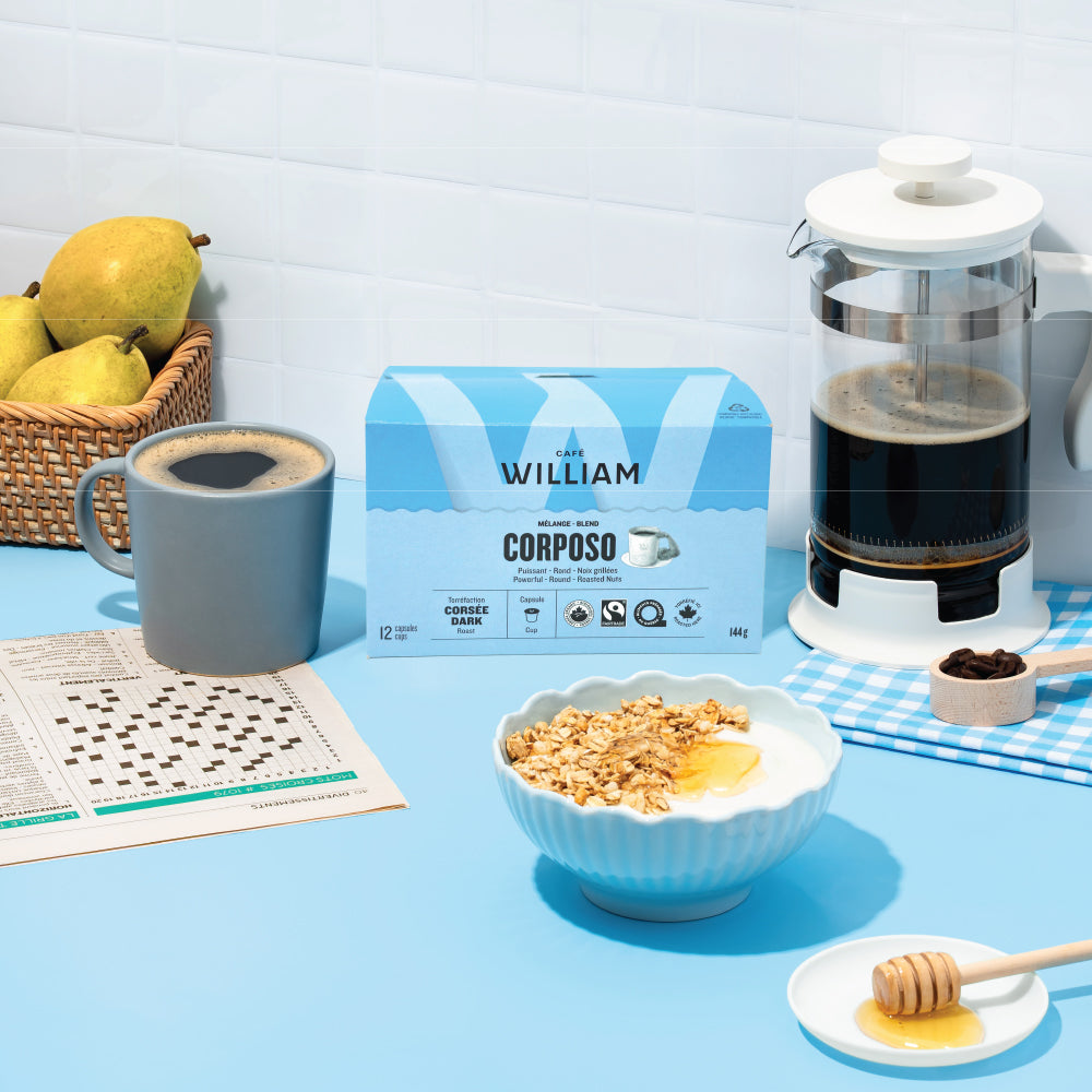 Crafted from a bold blend of South and Central American beans, Corposo is a dark roast that’s full-bodied, rich, and unapologetically powerful. With its rounded mouthfeel and a light sheen of oil, it delivers deep notes of roasted nuts and a smoky finish that lingers. Smooth coffee lovers? This one’s not for you.
