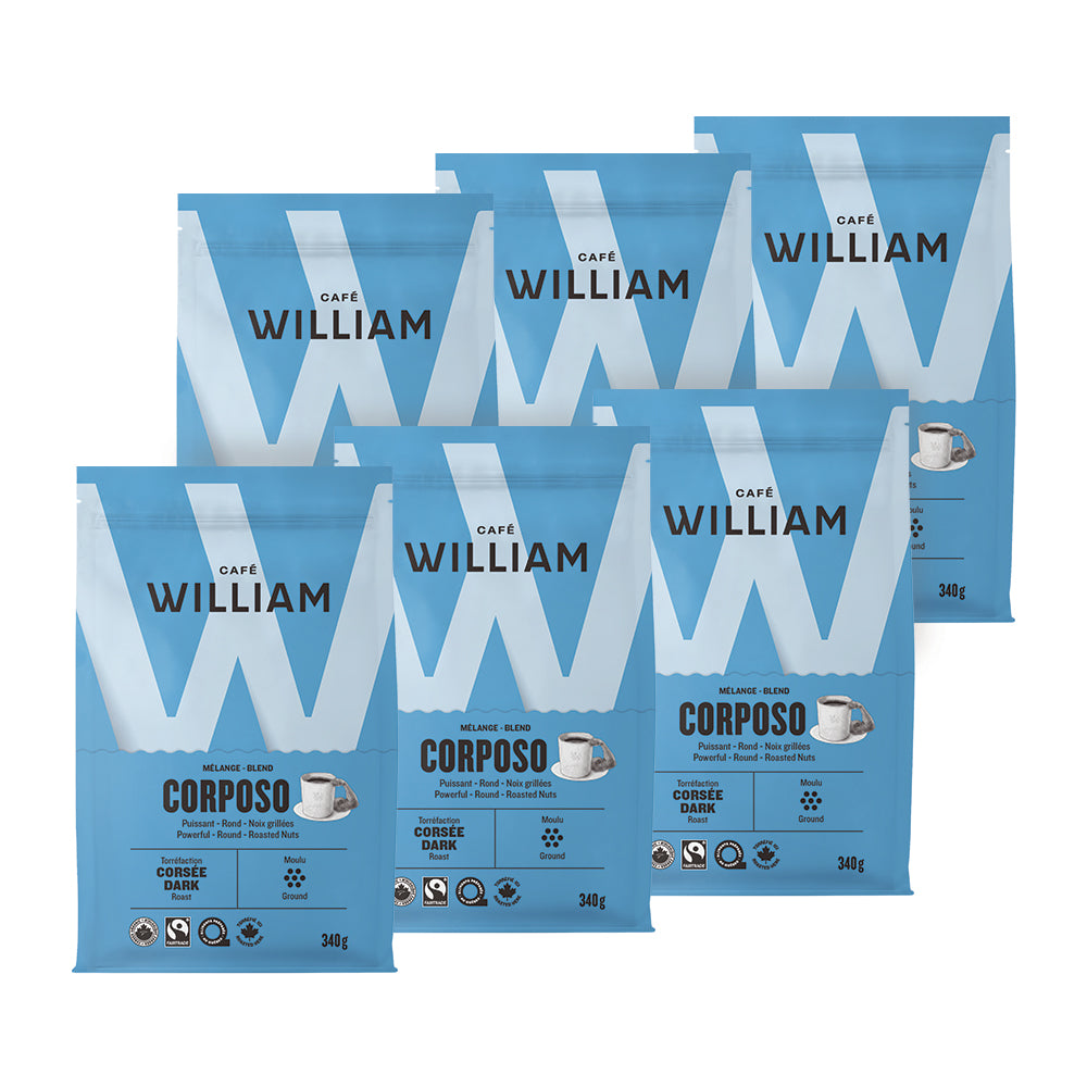 Issu d’un mélange audacieux de grains de l’Amérique centrale et du Sud, le Corposo est corsé à souhait et particulièrement riche. De torréfaction noire, il possède beaucoup de corps et risque de vous surprendre par sa puissance ! Rond en bouche et arborant une huile légère en surface, il étonne avec ses notes de noix grillées et sa finale fumée. Adeptes des veloutés s’abstenir !