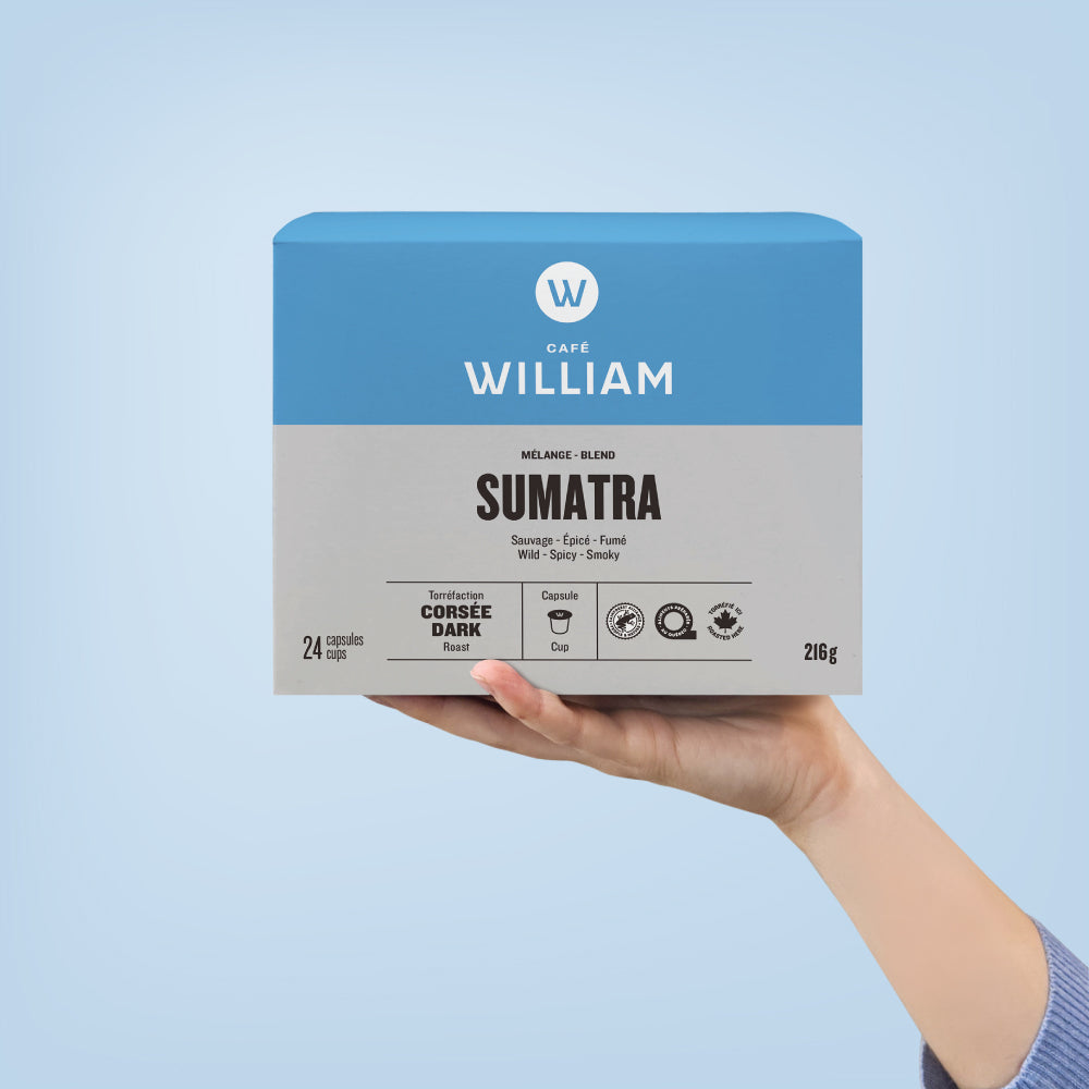 Notre mélange Sumatra est torréfié longuement pour dévoiler de riches notes sauvages et typiques de cette origine. Le café de cette île luxuriante est cultivé dans de petites fermes, où les grains sont cueillis, lavés et préparés à la main. Épicé, fumé et sans acidité, ce café audacieux comblera les plus aventureux !