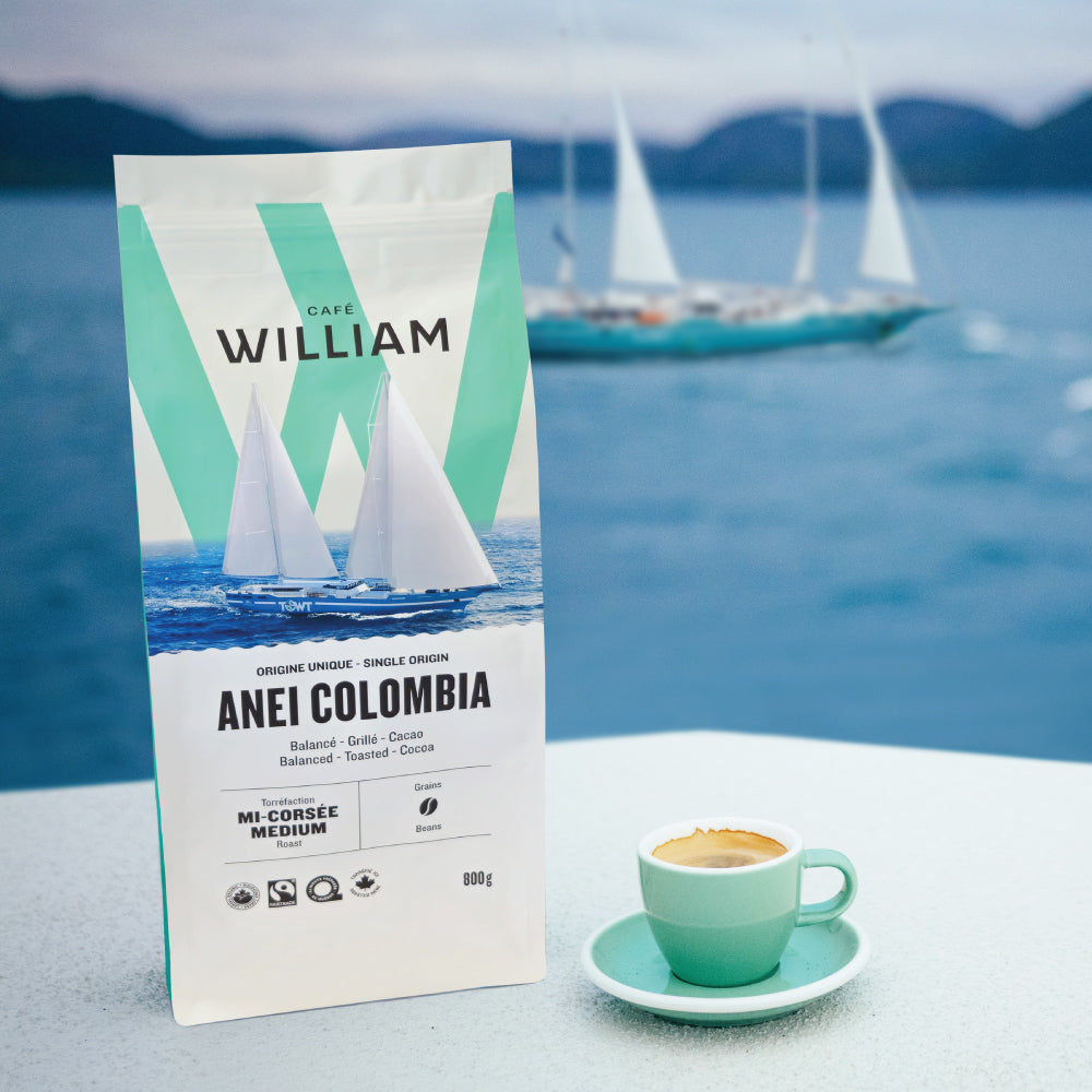 This year, we are setting sail and partnering with TransOceanic Wind Transportation (TOWT) to ensure sustainable coffee and shipping. This partnership marks the start of a new era in shipping, enabling coffee to be transported over thousands of kilometers with virtually zero GHG emissions. At the end of the inaugural voyage of the ANEMOS, the largest sailing cargo ship in modern history, the equivalent of 25 containers of green coffee produced by the ANEI cooperative will be transported from the Port of Santa Marta, Colombia, to the Port of Quebec. This tour de force demonstrates our ambition and our desire to innovate in order to act beyond the cup.
